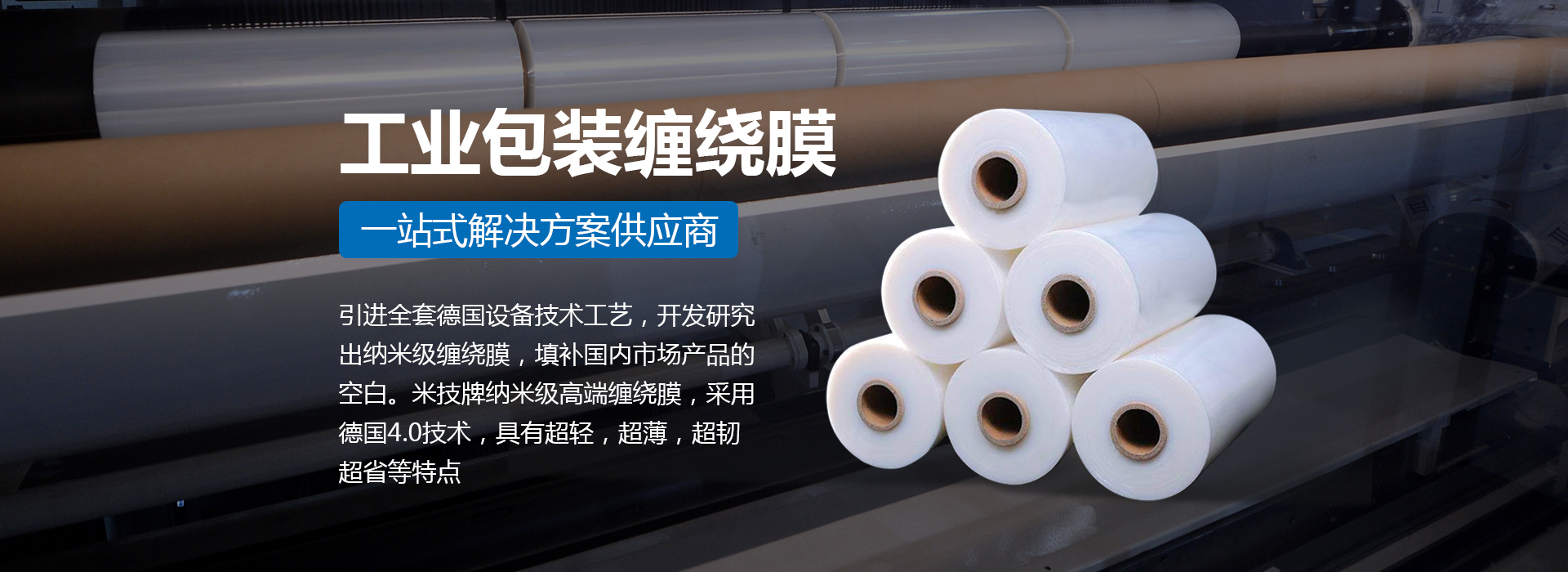 引進全套德國設備技術工藝,開發(fā)研究出納米級纏繞膜,填補國內(nèi)市場產(chǎn)品的空白。米技牌納米級高端纏繞膜,采用德國4.0技術,具有超輕,超薄,超韌,超省等特點。